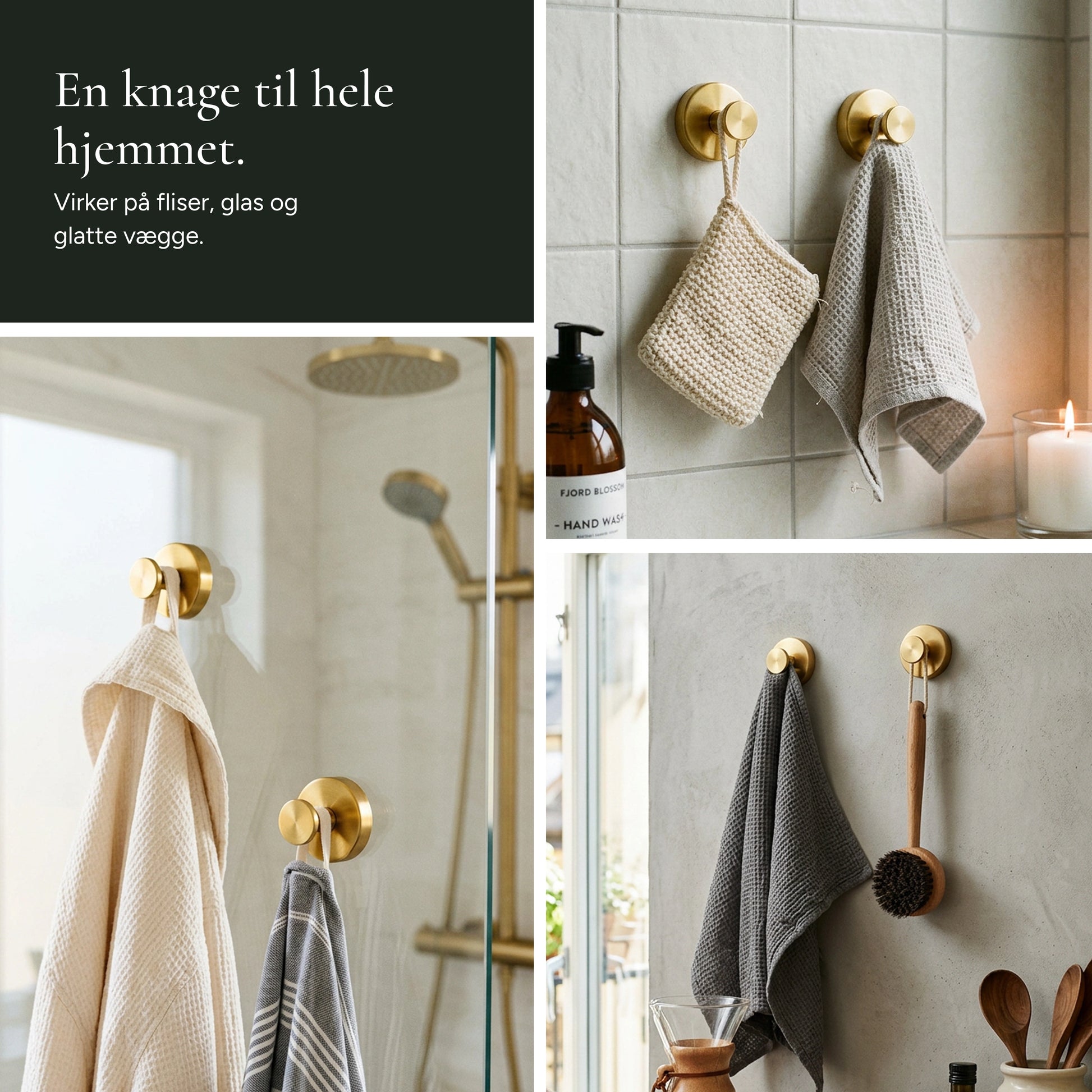 Giv dit badeværelse, køkken eller entré en stilfuld opgradering med vores Wall Hooks. Disse minimalistiske knager kombinerer nordisk æstetik med praktisk funktionalitet, så du slipper for boremaskine og ødelagte fliser.